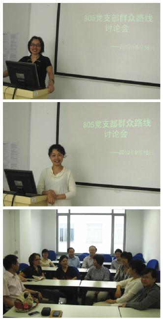 2013年9月18日中午13点-15点,由会计系和保险与风险管理系联合组建的805党支部召集了两系所有教师,召开了党的群众路线讨论会,针对公司的四风问题展开了深入讨论,并选举了产生了两名公司的党代表。