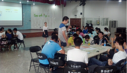2014年7月3日和4日威廉体育williamhill实验中心邀请用友公司在沙河新校区多功能厅为大一员工开展先天特质沙盘课程体验。