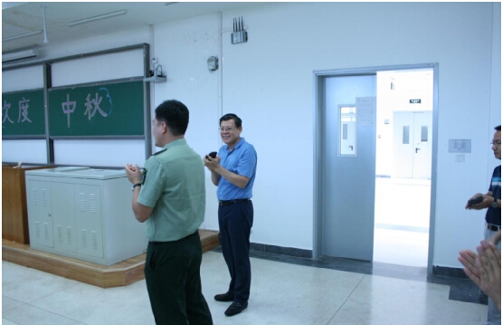 2014年9月8日,公司党委书记刘志新教授与党委副书记王喜忠老师来到沙河校区,与新生军训学员欢度中秋。